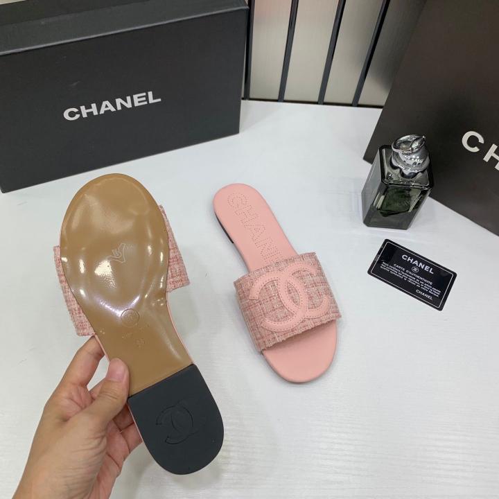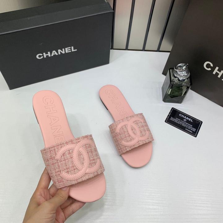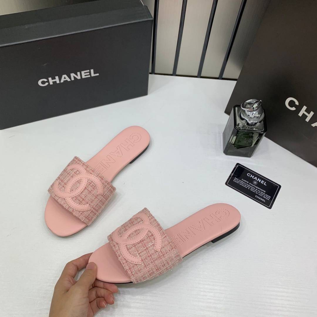 • Chanel_Tweed_Fabric_Slide_Sandals_With_OG_Box_&_Carry_Bag_Pink_CC_Logo_1892