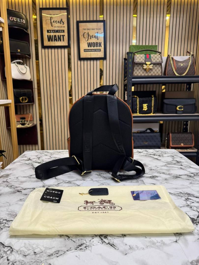 COAC_H LEATHER COURT WITH DUST BAG PREMIUM QUALITY BAGPACK [APRICOT BROWN]