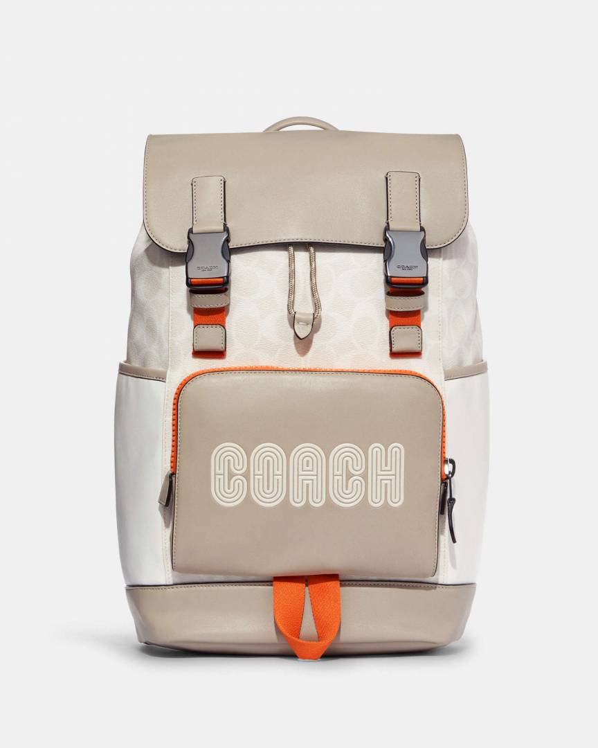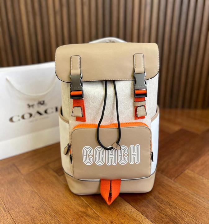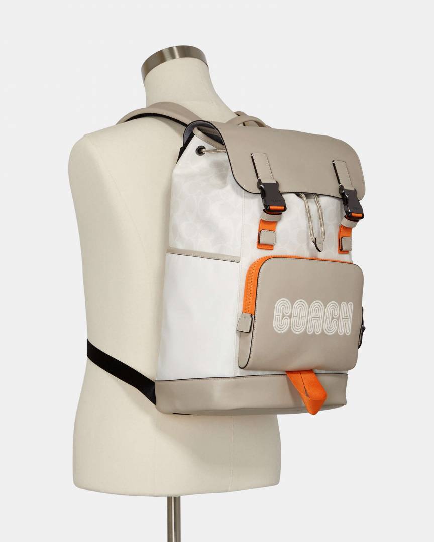 Coach_Track_Backpack_Colorblock_Signature_Canvas_Orange_Accents_With_Dust_Cover_&_Carry_Bag