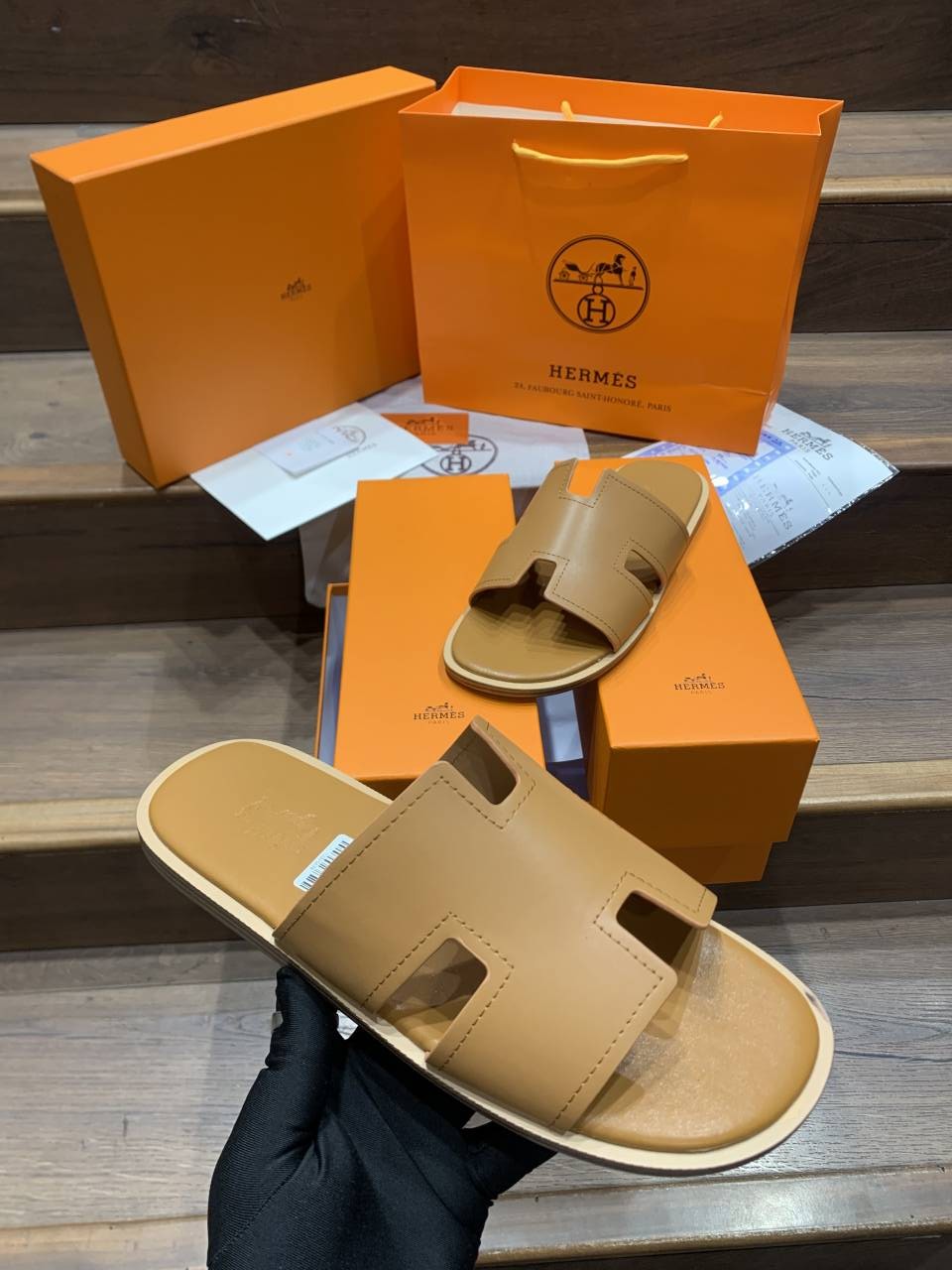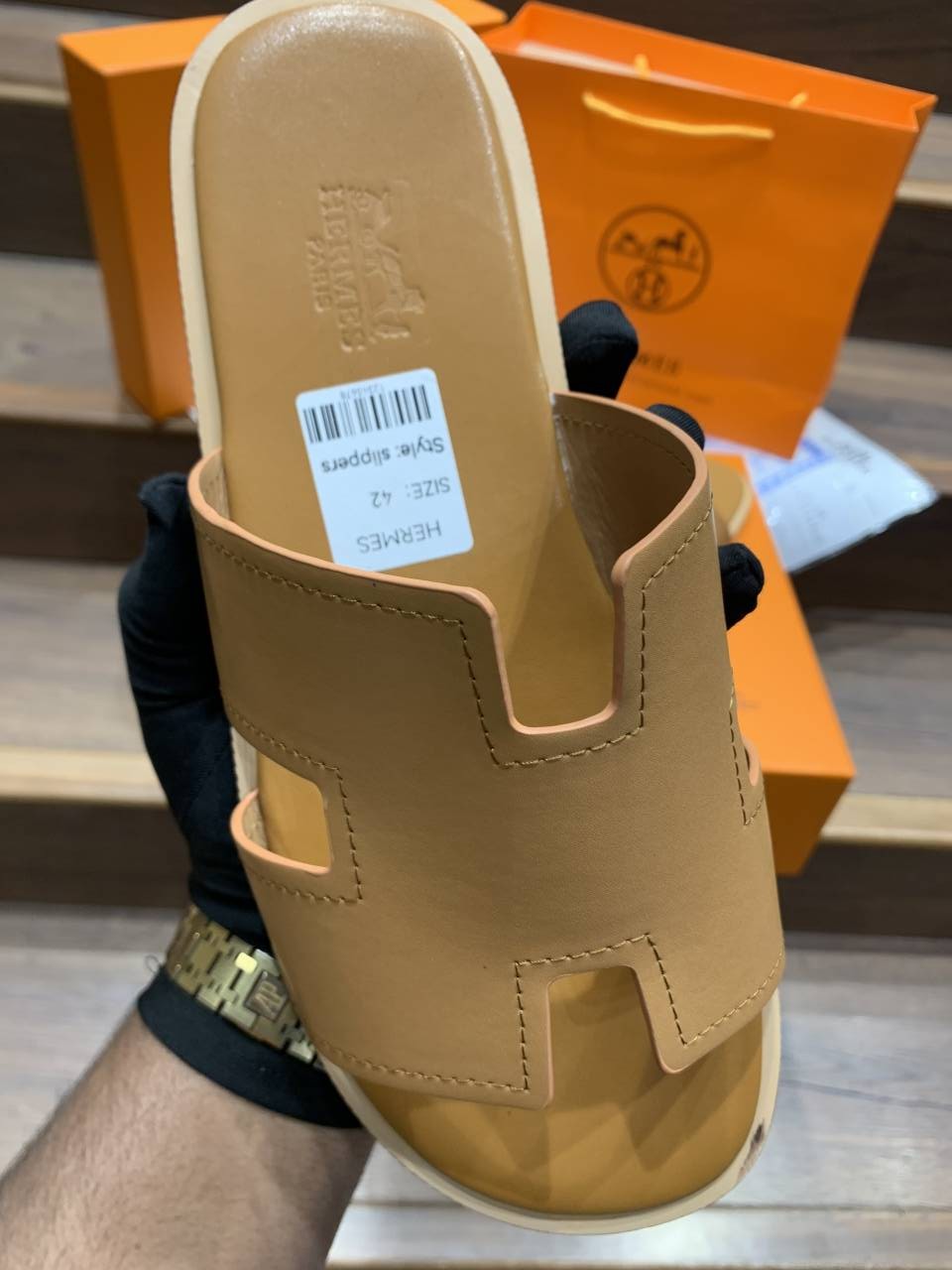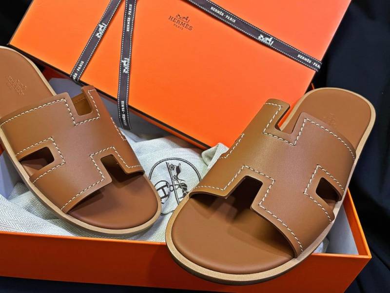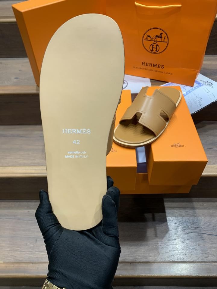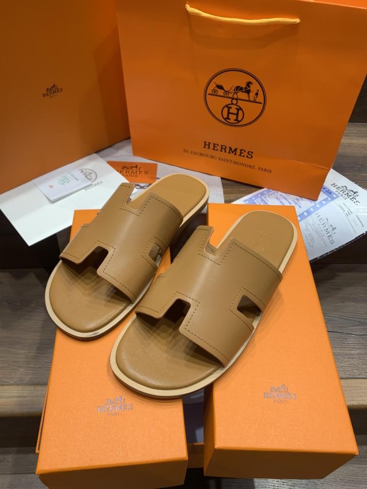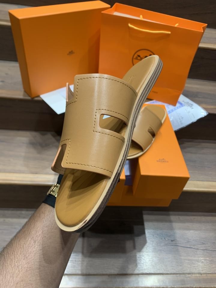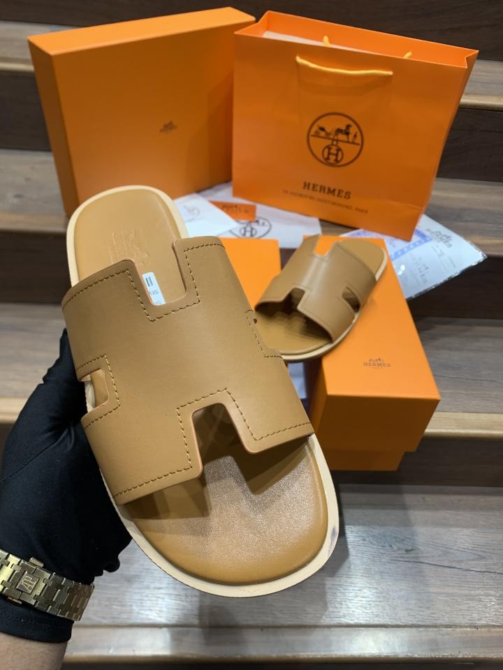 HERMES IZMIR BROWN PREMIUM LEATHER SLIDE