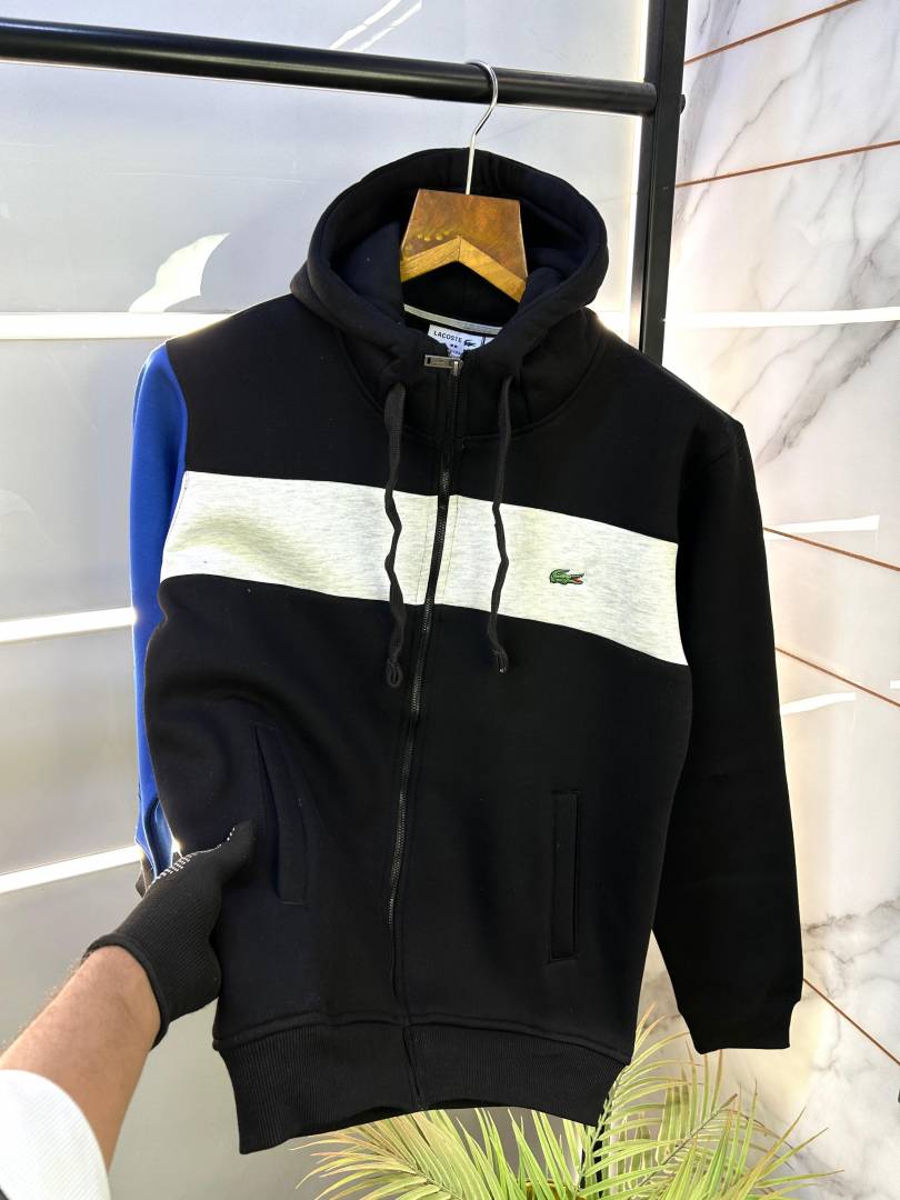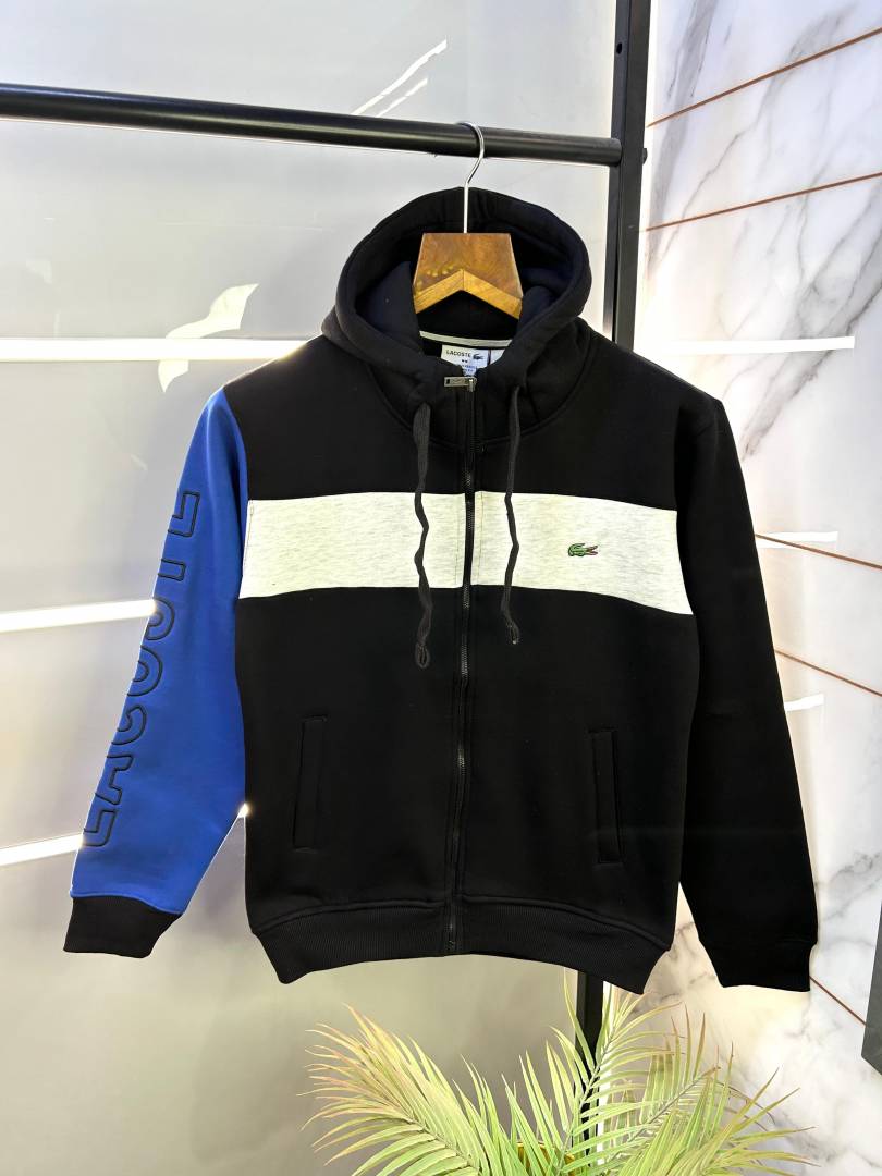 Lacost e Imported Black Embroidery Logo Super Premium Zipper Hoodie F2171-BLK