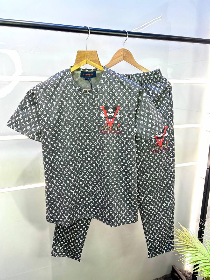 Loui s_Vuitton Imported Monogram Print Dark Grey Premium Track Suit With Brand Carry Bag F1860-DG