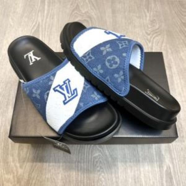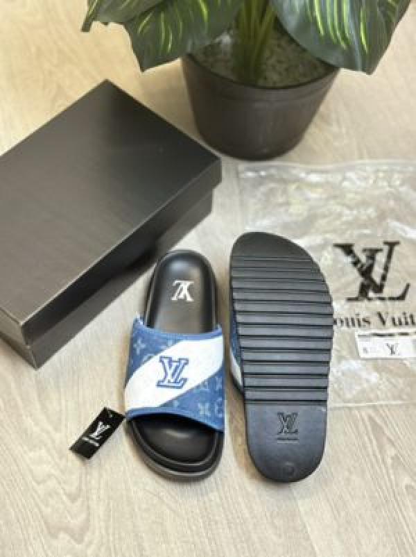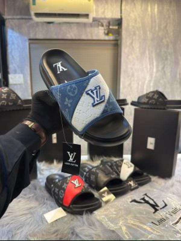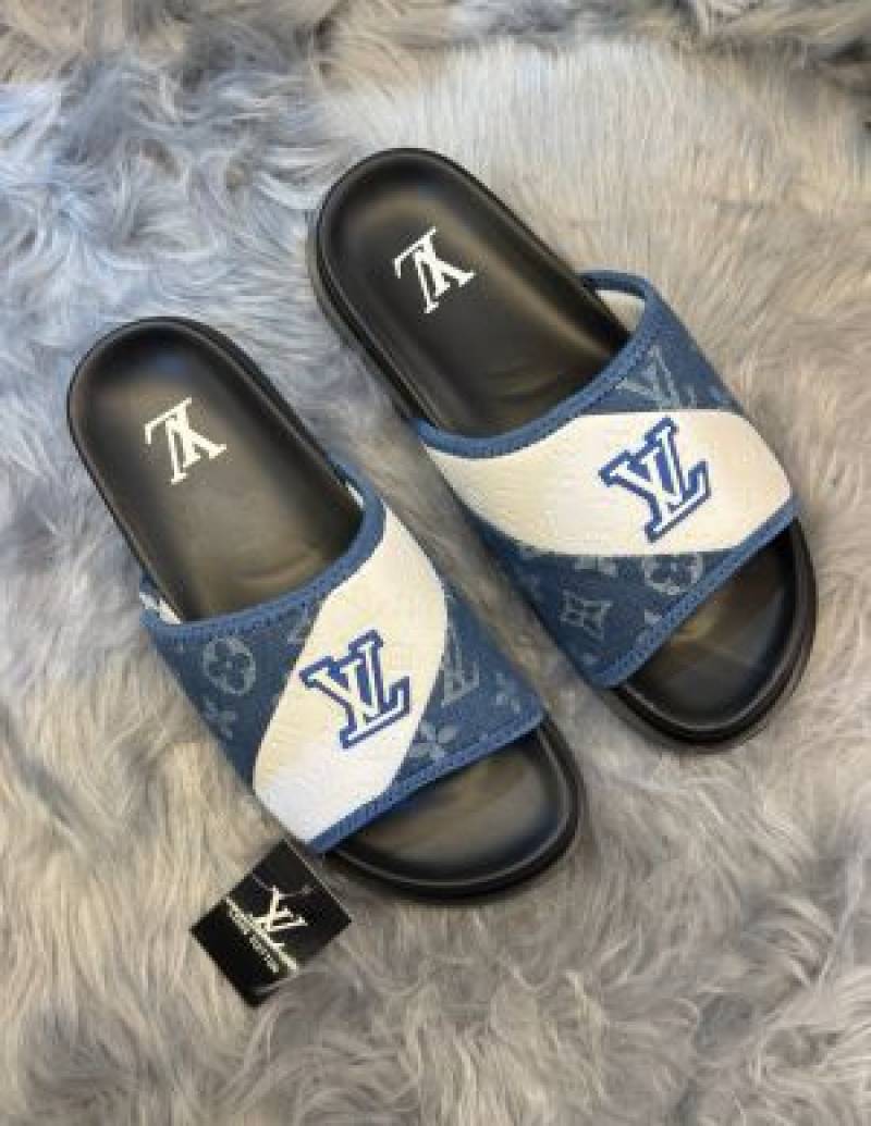 Louis-Vuitton Monogram Blue White Black Premium Slides