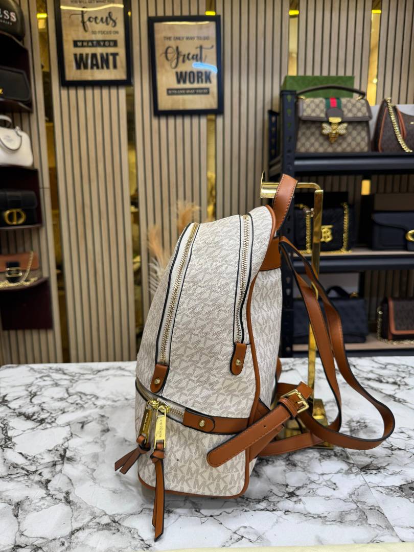 Michael_Kors Signature Backpack With Dust Bag And Card (Beige)