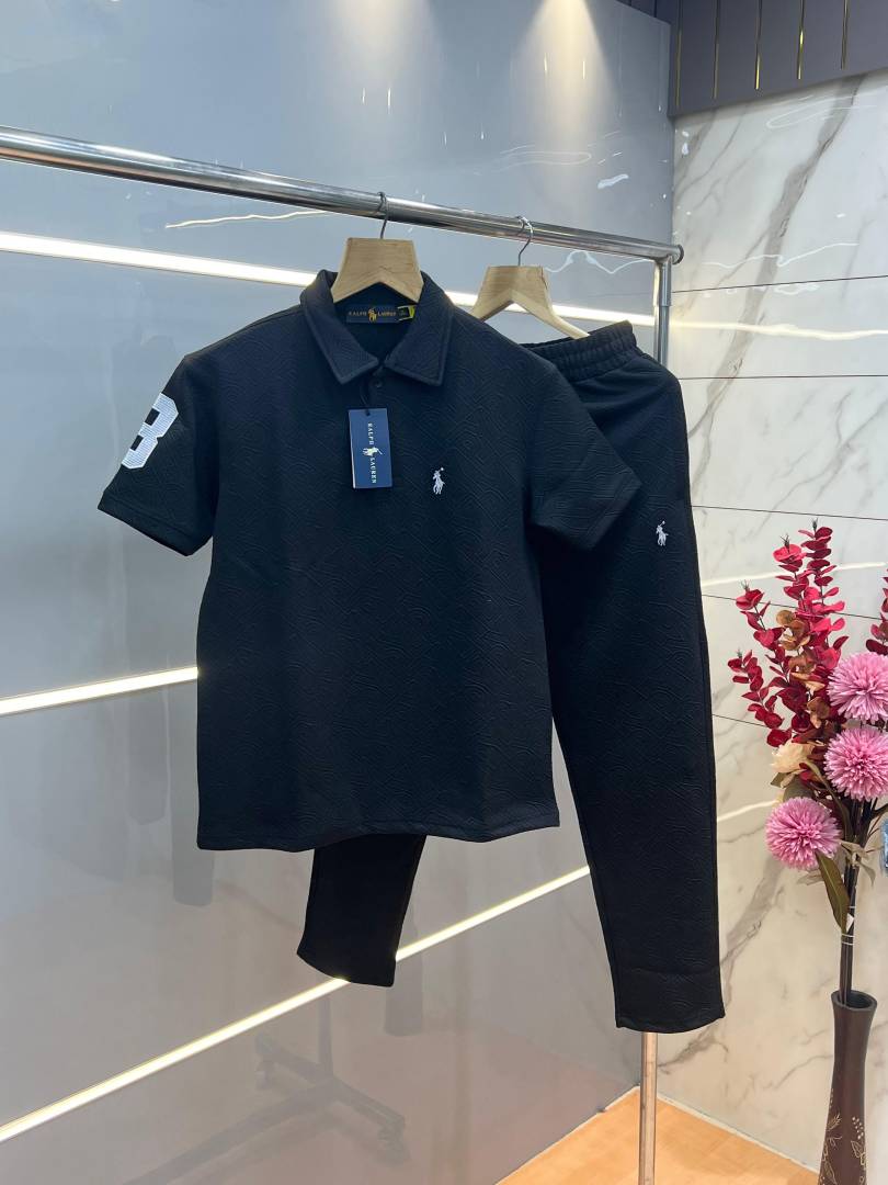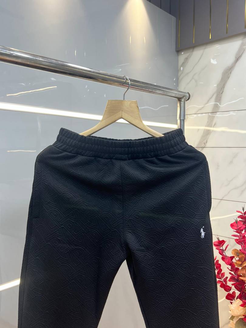 Ralph Laure n Black Imported Jacquard Fabric Allover Monogram Emboss Logo Tracksuit with Carry Bag 3721