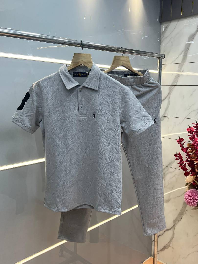 Ralph Laure n Grey Imported Jacquard Fabric Allover Monogram Emboss Logo Tracksuit with Carry Bag 3719